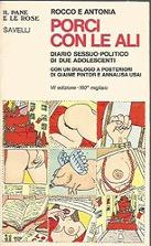 Nel 1976 l’artista Pablo Echaurren realizza l’immagine di copertina per il libro di Nanni Balestrini, La violenza illustrata, edito da Einaudi, utilizzando per la prima volta il fumetto con il modulo dei “quadratini”, che diventa la sua cifra stilistica. Si tratta di opere di piccolo formato, realizzate con china e acquerello su carta oppure con china e smalti su cartoncini, con campiture piatte di colore, in cui le immagini risultano inquadrate in una sequenza di piccoli riquadri tratteggiati «addentellati come francobolli ancora da staccare» (C. Salaris, La vita, in Pablo Echaurren, dagli anni Settanta a oggi, catalogo della mostra (Roma, Chiostro del Bramante, 2004), Gallucci, Roma, 2004, pp.188-189). La soluzione dei “quadratini” di Echaurren ricorre anche in due collane lanciate nello stesso periodo dalla casa editrice romana Savelli: Il pane e le rose e La chitarra, il pianoforte e il potere. Il progetto editoriale si inaugura con Porci con le ali: diario sessuo-politico di due adolescenti, il best seller della giornalista e scrittrice Lidia Ravera e dello psichiatra, scrittore ed educatore Marco Lombardo Radice. Per la copertina del romanzo – ambientato al liceo Mamiani in una Roma post-sessantottina vissuta da due adolescenti alle prese con la politica, la sessualità e la costruzione della propria identità – Echaurren attinge al repertorio iconografico e alla vivacità cromatica dei suoi dipinti. Il pugno alzato, le bandiere rosse dei cortei delle manifestazioni, i particolari di nudi femminili e, al centro, il richiamo diretto al titolo con il porcello con le ali sintetizzano, con la stessa immediatezza, irriverenza, vivacità cromatica e forza comunicativa dell’arte moltiplicata delle avanguardie del primo Novecento e della pop art americana, la condizione dei giovani di sinistra di quegli anni, tra rivoluzione dei costumi e utopie politiche.