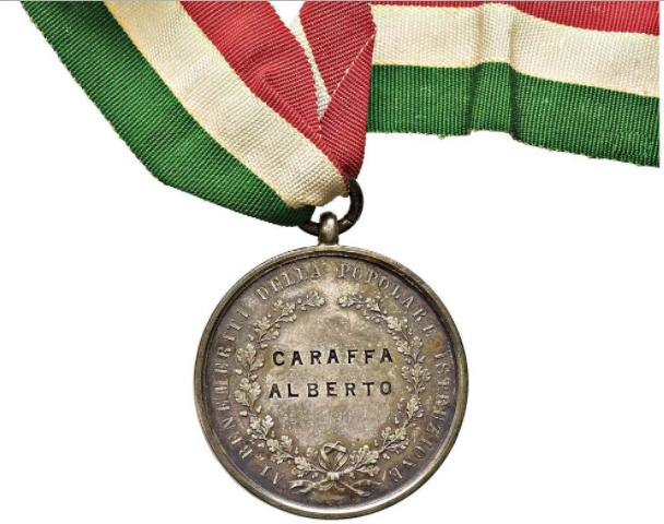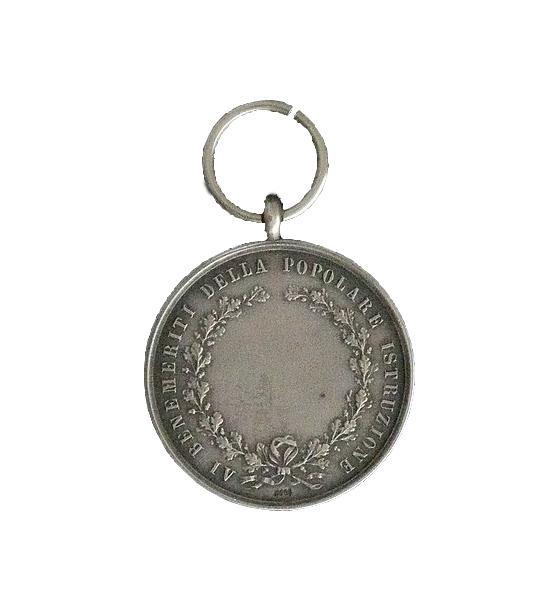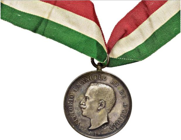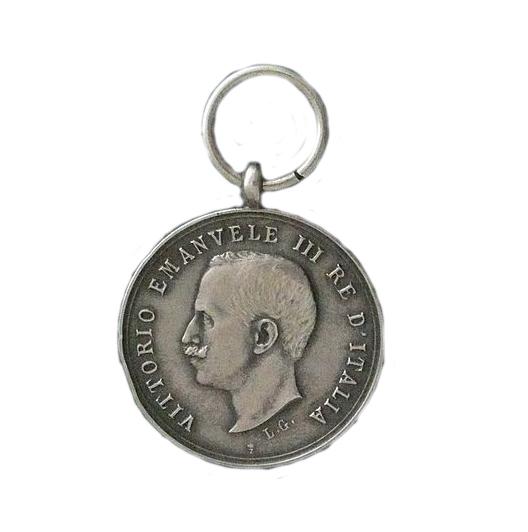 Al Diploma era associata una medaglia d'argento che riportava nel diritto la effigie del Re Vittorio Emanuele III rivolta verso sinistra (Foto 1) e nel verso una corona di quercia (Foto 2) che conteneva il campo vuoto nel quale inserire il nome del benemerito (Foto 4), che poteva fregiarsi dell'onorificenza portando l'insegna alla parte sinistra del petto appesa ad un nastro di seta dai colori nazionali (Foto 3).