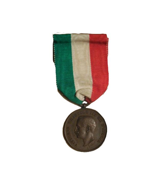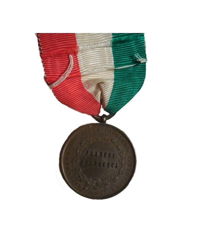 Al Diploma era associata una medaglia di bronzo, della quale il benemerito poteva fregiarsi portandola alla parte sinistra del petto appesa ad un nastro di seta dai colori nazionali. La medaglia riportava nel diritto la effigie del Re Vittorio Emanuele III rivolta verso sinistra (Foto 1) e nel verso una corona di quercia (Foto 2).