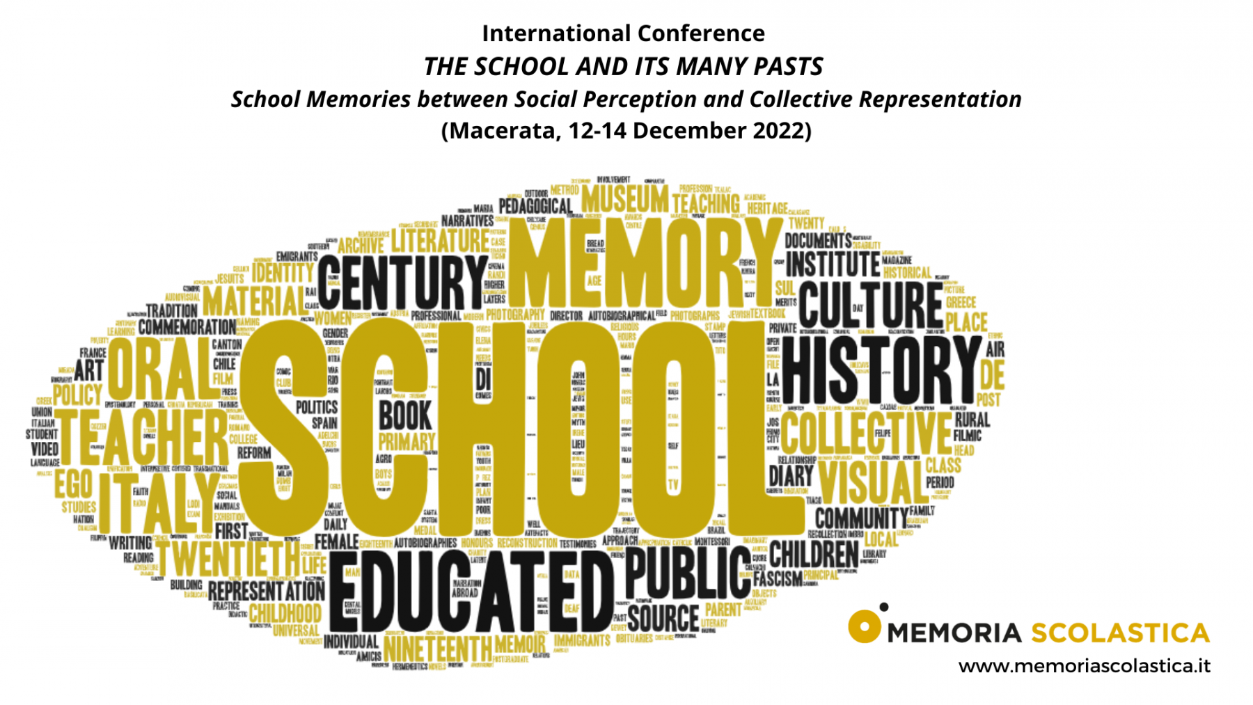 Il convegno si terrà a Macerata dal 12 al 14 dicembre 2022 e si propone di proseguire il filone di ricerca inaugurato dal simposio internazionale School Memories. New Trends in Historical Research into Education: Heuristic Perspectives and Methodological Issues, svoltosi a Siviglia nel 2015.